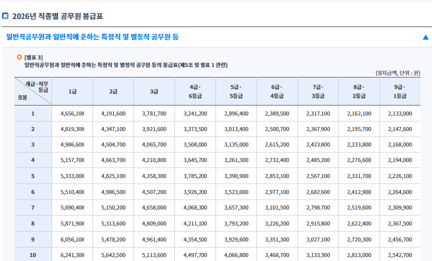 공무원 월급은 직급보다 호봉이 더 중요합니다. 같은 9급이라도 몇 호봉이냐에 따라 월급이 달라지고, 7급은 초봉부터 급여 구조 자체가 다릅니다. 공무원 호봉표를 이해하지 못하면 실제 연봉 체감이 크게 어긋날 수 있습니다.공무원 호봉표 정리를 해보겠습니다. 공무원 월급은 겉으로 보이는 숫자보다 구조를 이해하는 것이 훨씬 중요합니다. 특히 공무원 급여는 직급보다 호봉에 따라 달라지기 때문에, 호봉표를 제대로 알지 못하면 실제 월급과 연봉 체감이 크게 달라질 수 있습니다. 이 글에서는 공무원 호봉표를 기준으로 9급과 7급의 차이를 자세하게 알려드리겠습니다.공무뭔봉급표 바로 확인하기1. 공무원 호봉표란 무엇인가?공무원 급여는 연봉 협상이 아닌 호봉제로 운영됩니다. 직급(9급 7급 등)과 호봉(근속 연차)에 따라..
